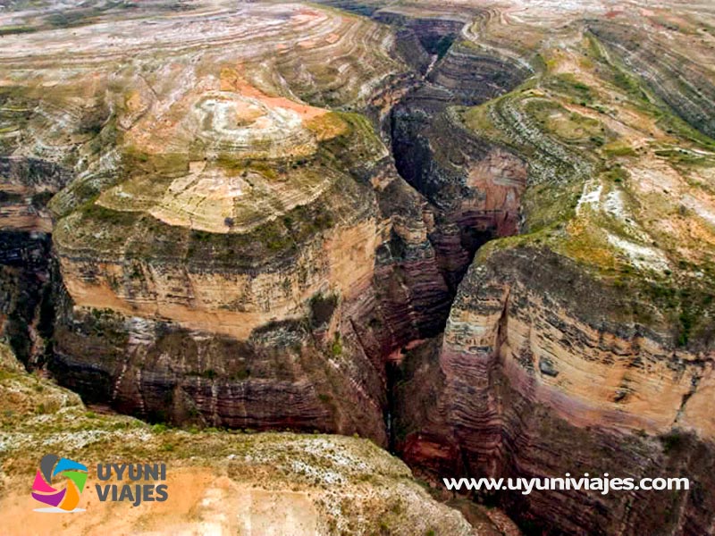 Salimos hacia el Parque Nacional Torotoro ubicado en la región de Valles Secos Mesotérmicos del Norte de Potosí. La región es típicamente montañosa con profundos cañones, valles y caídas de agua. Se puede encontrar huellas de grandes reptiles de la era mesozoica y profundas cavernas. Seguidamente, a medio día, llegamos al Hotel El Molino, para acomodarnos y posteriormente degustaremos de un delicioso almuerzo, por la tarde, partiendo rumbo a Carreras Pampa y Chiflón Q´aqa. Durante el recorrido se puede apreciar una imagen del cañón de Torotoro, camuflada por árboles y luego se descubre a la distancia una gruta vertical de donde se origina una caída de agua cristalina.